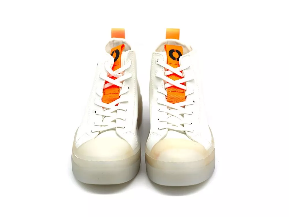 Want to impress others with your ankle sneakers and reduce your ecological footprint at the same time? Then this novel minimalist "ACT NOW" design in white and orange is for you. The main material is 100% recycled nylon and bluesign® certified fabric, where the entire manufacturing process is followed and meets maximum quality with minimum resource consumption. They are vegan and free of PFC chemicals.