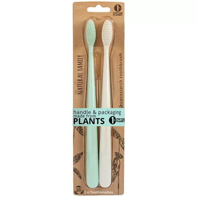 Toothbrushes are made from 100% NON-GMO corn starch, ensuring biodegradability and zero impact on our planet. The rounded head with soft nylon bristles perfectly cleans even the hard-to-reach areas at the back of the mouth.