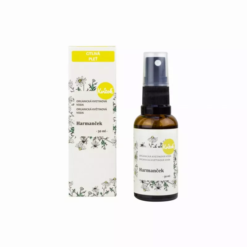 If you can't find chamomile of the purest quality in the fields far and wide, you might be interested in this flower water in BIO quality from the Slovak brand Kvitok. It represents a pure product of nature, containing no added substances (alcohol, preservatives, synthetic fragrances, or dyes).