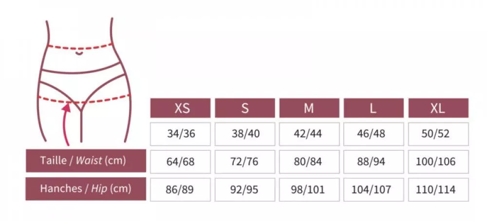The high-waisted design ensures high comfort during menstruation. You can choose from sizes XS - XL.