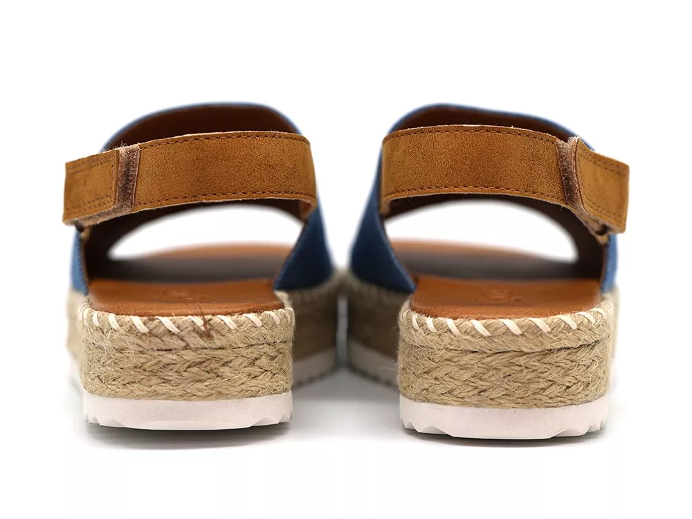 High platform sandals in a popular denim design. The jute-lined sole matches along with the Velcro-fastened strap. For the beach, the city or a summer barbecue with friends, simply anywhere you appreciate comfort all day long.