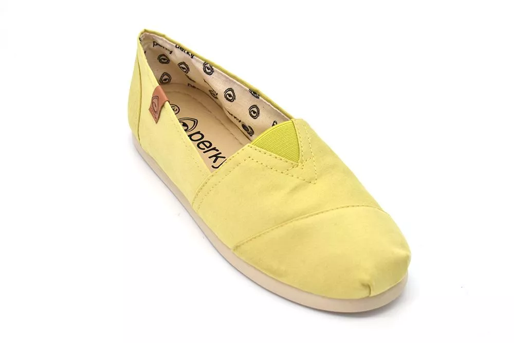 Single color shoes are almost a must-have addition to any wardrobe! They go with all outfits and you can choose exactly the color you like. Perky brings this bright yellow that goes great with summer dresses and brightens up every day for you and the people around you. Perky Lima espadrilles are handmade from sustainably grown cotton and recycled PVC.